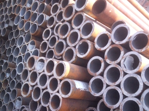 冷拔(軋)無縫鋼管:圓管坯→加熱→穿孔→打頭→退火→酸洗→涂油(鍍銅)→多道次冷拔(冷軋)→坯管→熱處理→矯直→水壓試驗(探傷)→標(biāo)記→入庫。